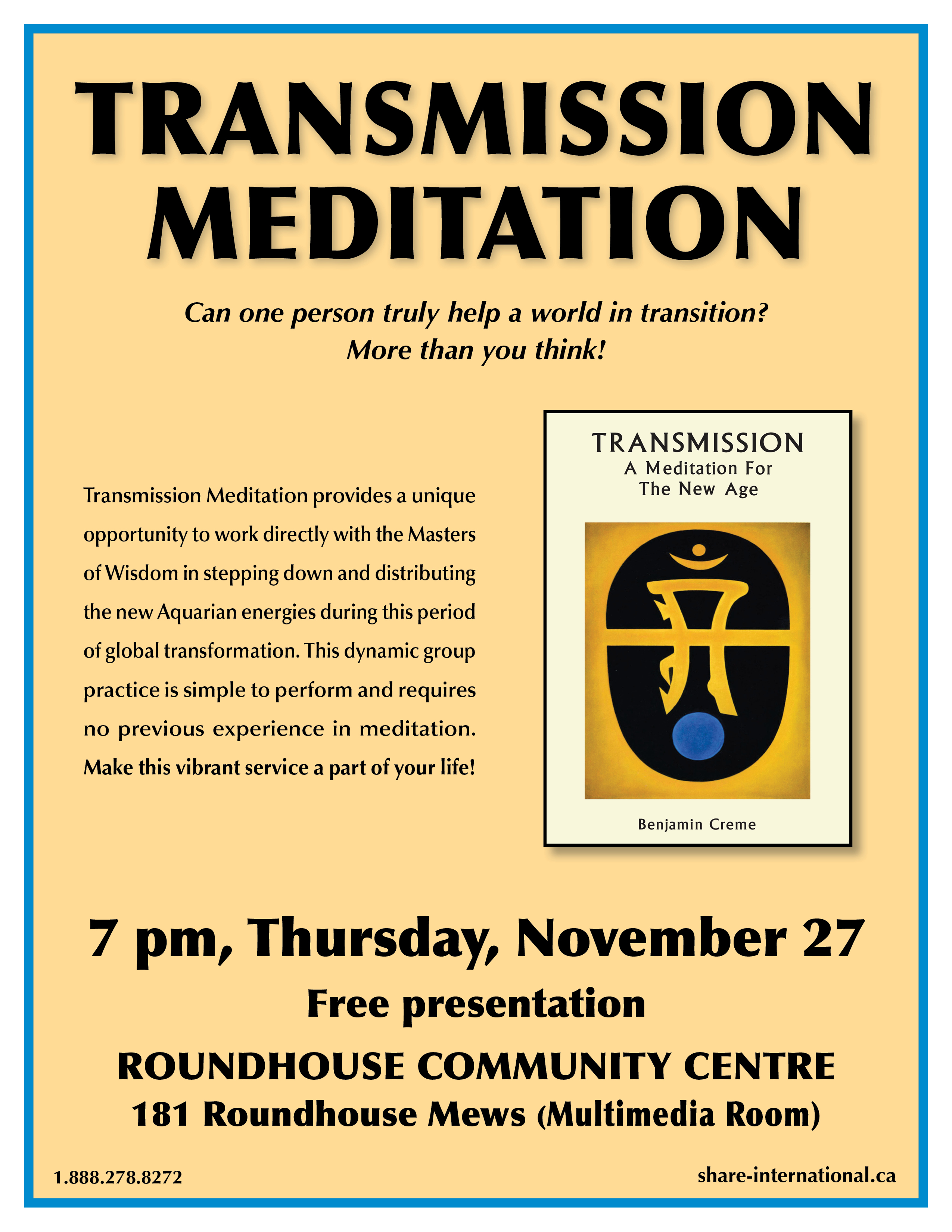 For further information, or any questions ahead of time, please contact Edmonton-meditation@share-international.ca