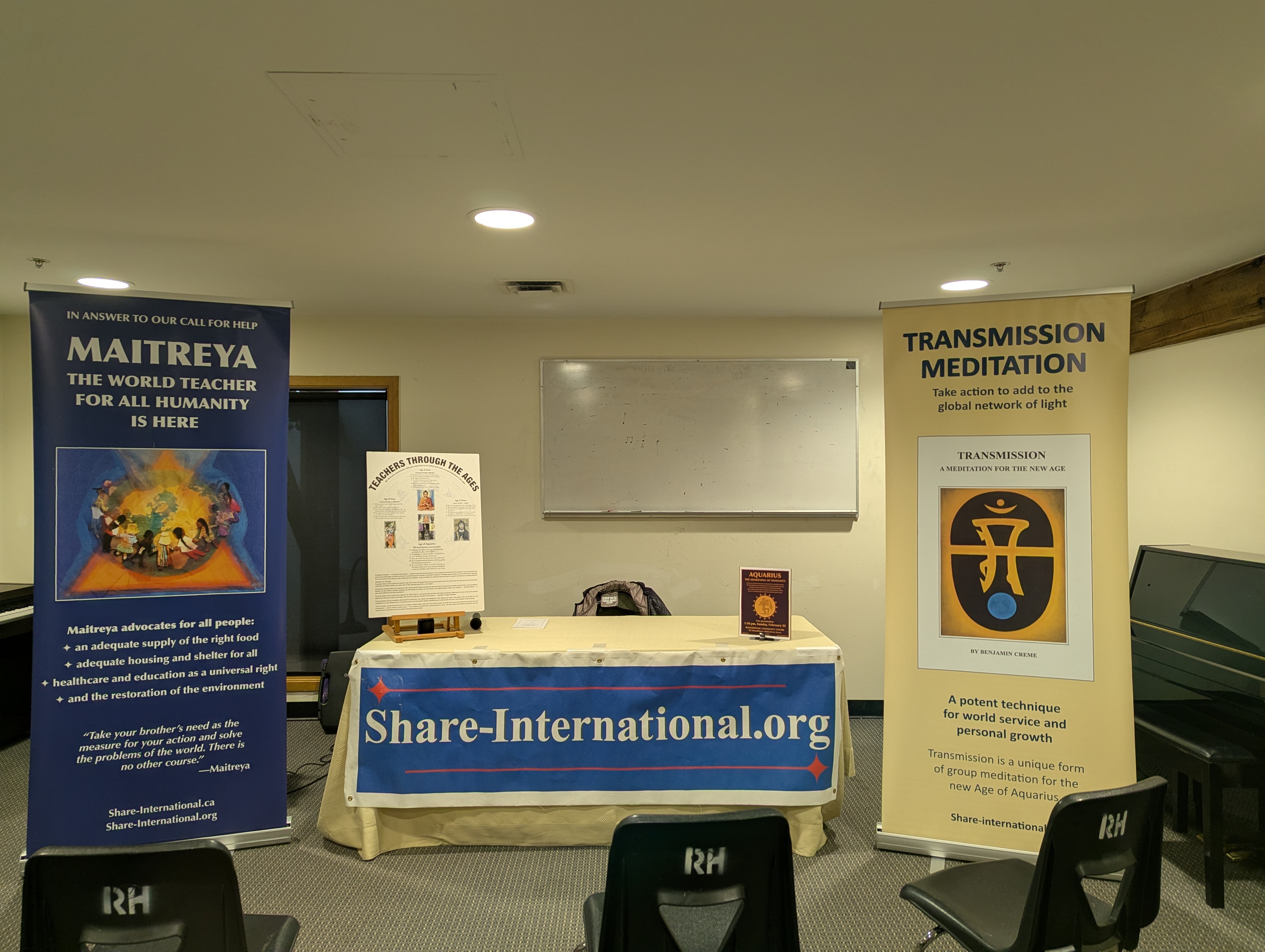 Share International Foundation Canada is a non-profit society working since 1986 to make known the presence of Maitreya, the World Teacher, and to work with other volunteer groups in providing free information on related topics of interest. We work closely with our sister organization, Share International Foundation, which has its centre in London, England. Please check with your local library for any of the publications listed. A few are available for purchase from us. To check for events in your region of Canada, please visit our Regional Events section. If you would like us to give a free presentation of this information to your group or organization, please use our contact page to make the necessary arrangements. If you would like a presentation of this information in French, please visit our sister group Partage International Canada.