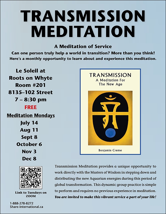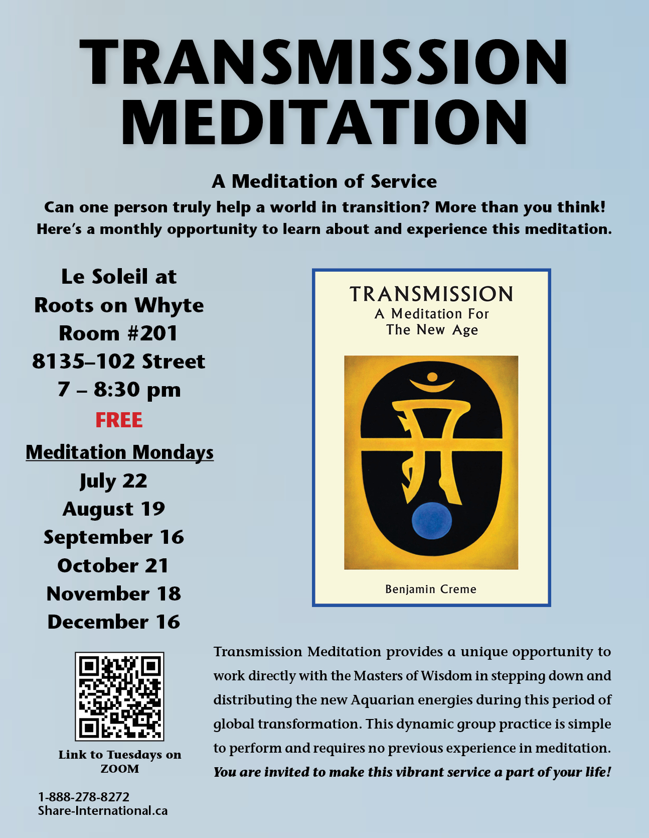 For further information, or any questions ahead of time, please contact Edmonton-meditation@share-international.ca